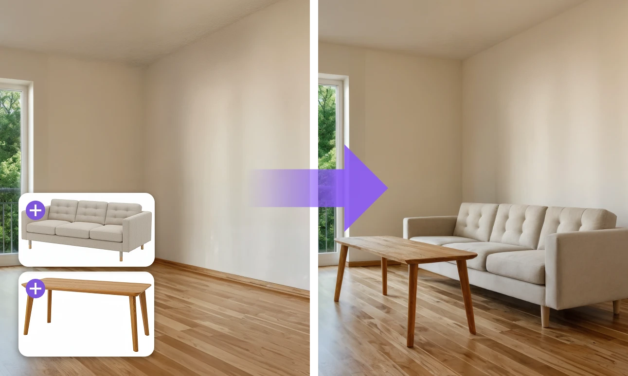Приглядели интересную мебель в магазине, но не знаете, впишется ли она в вашу комнату? На курсе вы научитесь вставлять мебель в интерьер: загрузите фото помещения и объектов — получите реалистичное изображение в вашей комнате.
